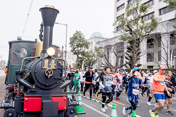 The marathon will start in front of the Ehime Prefectural Government Office, with the whistle of the “Botchan Train” blowing. The course takes an irregular turnaround and returns to the finish line at Shiroyama Park at the foot of Matsuyama Castle.