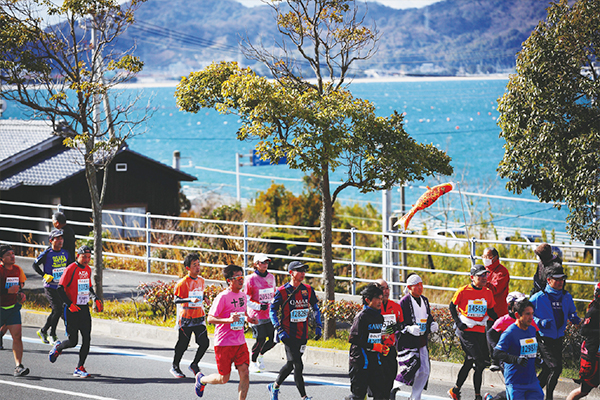 The event offers a great chance to experience the town’s unique hospitality culture. Participants can enjoy a variety of local sweets such as Ichiroku Tart and Bocchan Dango, local citrus fruits and other specialties at the aid stations, foods such as baked sweet potatoes, and receive the Imabari towel as a finisher's prize.