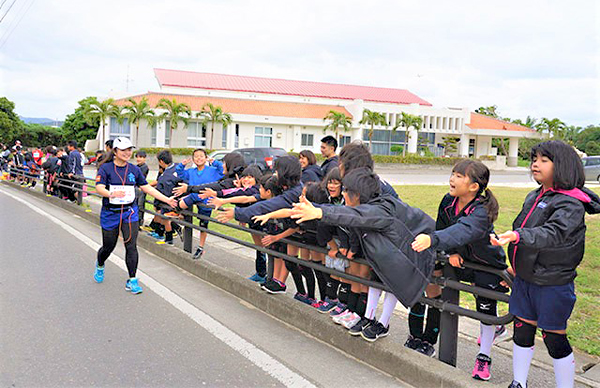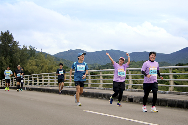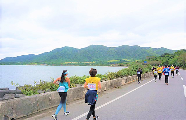 Runners can also take in the tropical scenery of Ishigaki Island, with its blue seas, mountains, and Mt. Omoto at the center.