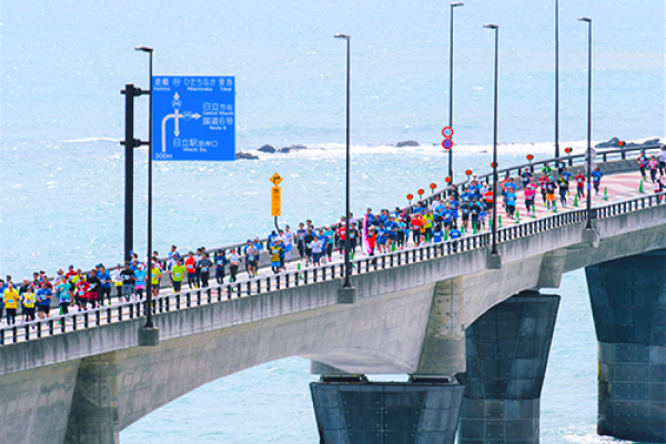 The course will utilize a section of National Route 6 Hitachi Bypass (Hitachi Seaside Road), which is normally closed to runners. (※Applies to the Half Marathon, 10K, and 5K races)